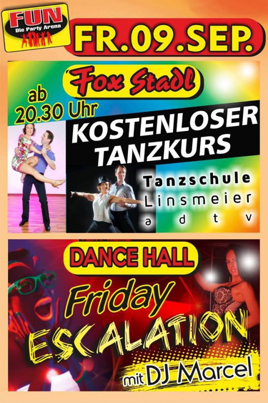 Friday Escalation in der DANCE HALL mit DJ Marcel und Kostenloser Tanzkurs im Fox Stadl mit der Tanzschule Linsmeier.