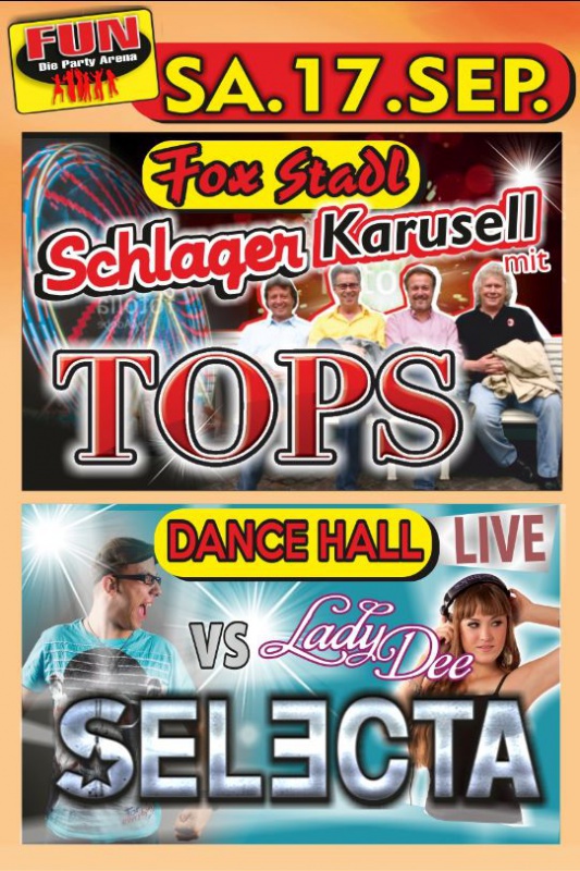 Lady Dee vs. SELECTA in der DANCE HALL, außerdem Schlagerkarussell mit TOPS im Fox Stadl!