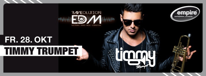 Freut euch den Superstar Timmy Trumpet, an einem der wenigen Termine live in Europa , in Österreich und in deinem Lieblingsclub zu erleben!