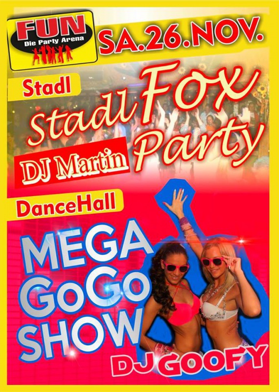 Freuen Sie sich auf eine Mega GOGO Show mit DJ Goofy in der Dance Hall und eine fetzige Stadl Fox Party mit DJ Martin im Stadl!