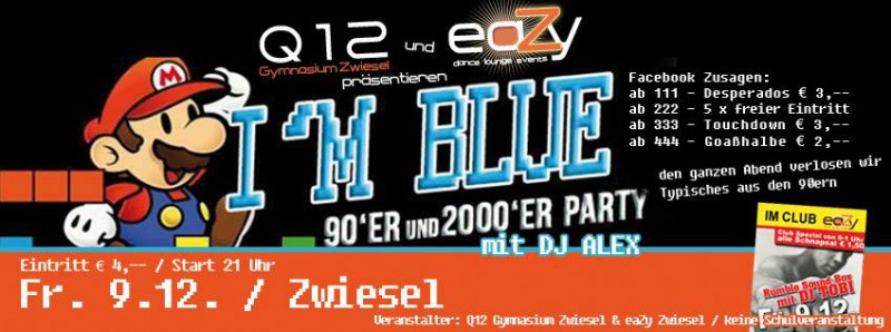 Freitag, 09.12.2016 - I`m BLUE - Die große 90er und 2000er Party der Q12 vom Gymnasium Zwiesel
