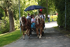 Die Fahrt mit einer Pferdekutsche können Sie täglich buchen. Lassen Sie sich durch die grünen Wälder und vorbei an Wiesen und Wildbächen fahren. Dauer der Fahrt ca. 1 Stunde. Kosten: ab 8,00 Euro pro Erwachsenem, 5,00 Euro pro Kind. Anmeldung erforderlich. Tel.: 08552/962343.